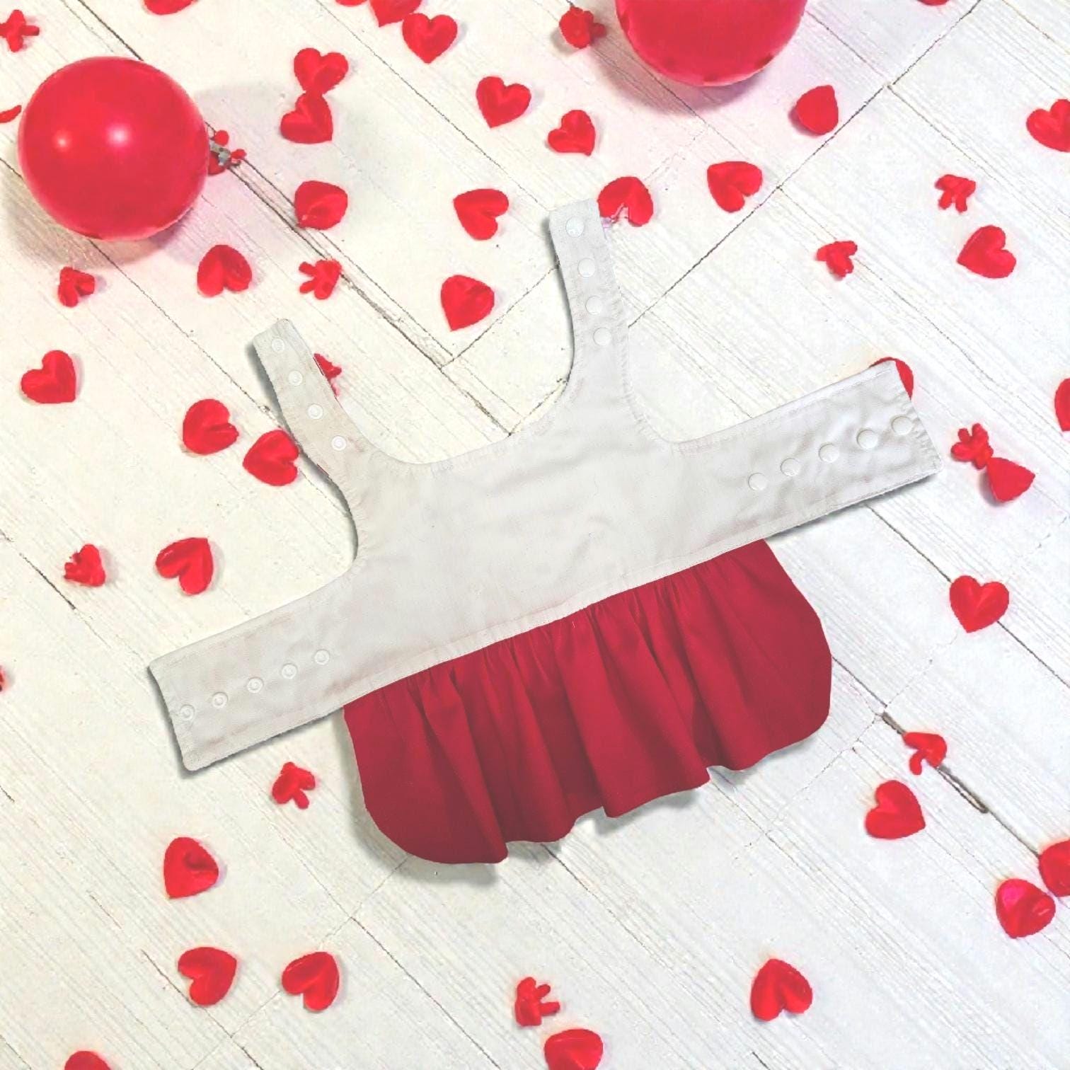This Ruffle Dress is made from white and red heart fabric with a red skirt. It is fully lined. It is machine washable on delicate and dry flat. Please take the time to measure your pup before ordering. The size chart is located in the photo gallery. This is a custom-made garment that will be made with the measurements you take. Please do not hesitate to reach out to me with any questions you may have.